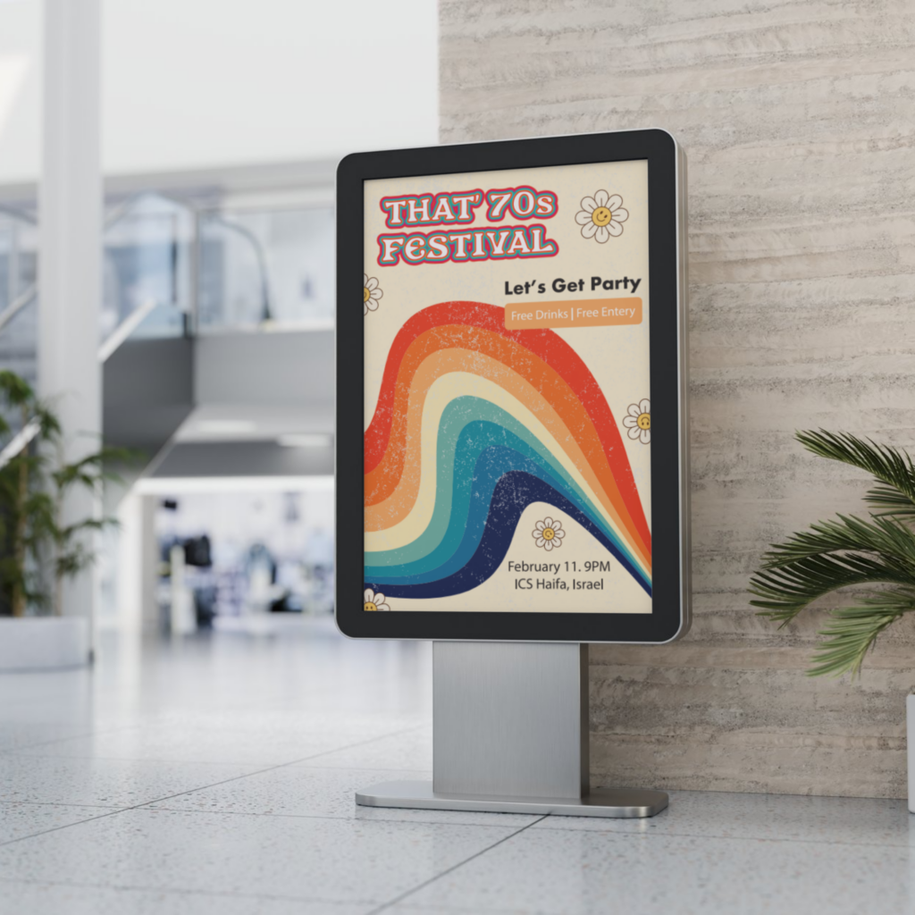 עיצוב כרזה דינמית וצבעונית לפסטיבל מוזיקה, הכוללת קומפוזיציה בולטת ואלמנטים גרפיים המבטאים אנרגיה, קצב וחוויית אירוע חיה.