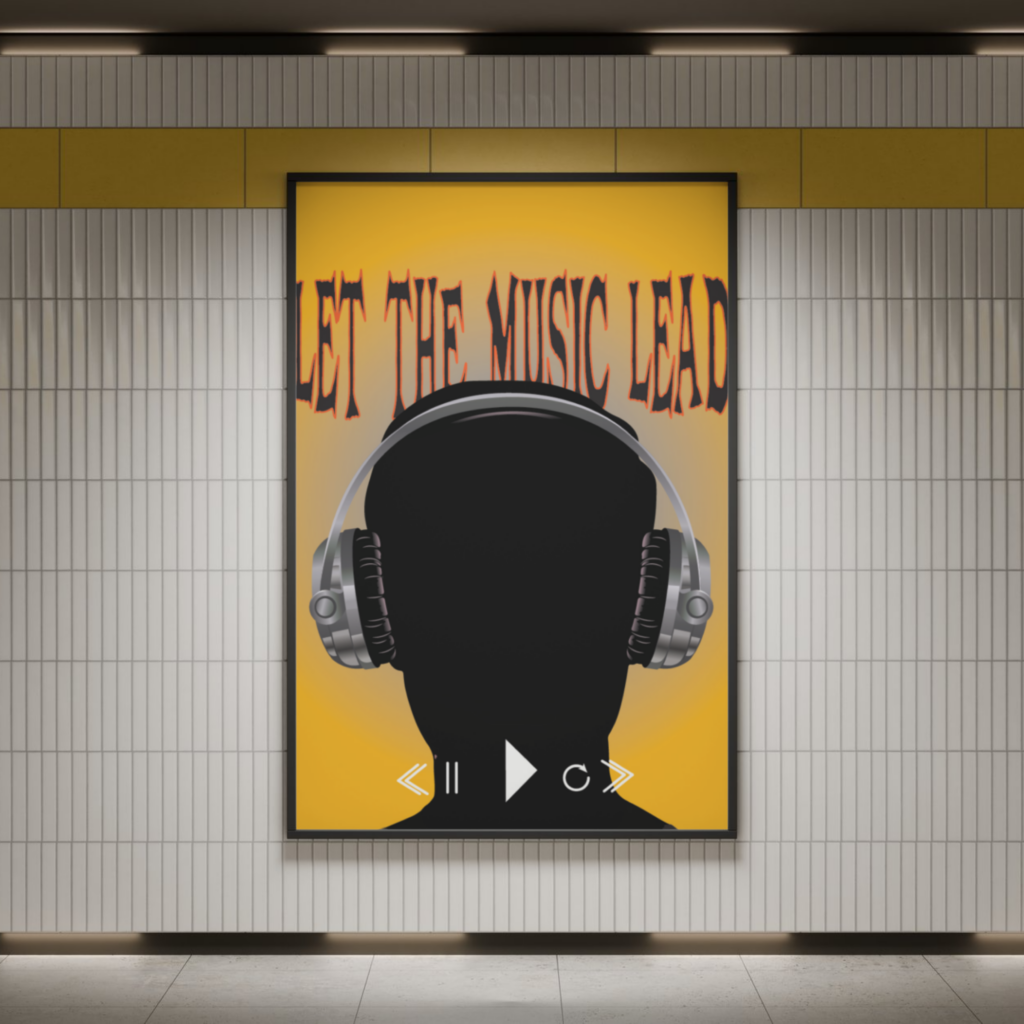 עיצוב כרזה מוזיקלית בסגנון אומנותי ומושך, עם שימוש בצבעוניות חזקה וטיפוגרפיה בולטת ליצירת אווירה מוזיקלית ייחודית ושובה.